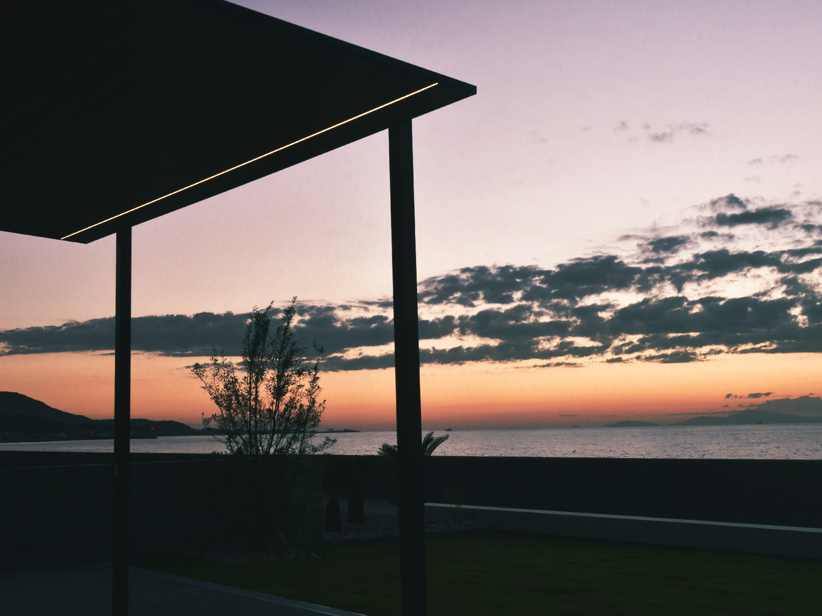 プライベートテラスからは、淡路島の美しいサンセットを堪能できます。